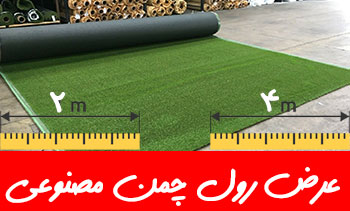 عرض رول چمن مصنوعی به طور کلی در سراسر جهان، و همچنین در کارخانههای تولید چمن مصنوعی در ایران، به دو اندازه استاندارد 2 متر و 4 متر تولید میشود. این اندازهها برای تسهیل در نصب و کاهش میزان چسب مورد نیاز، به خصوص در متراژهای بالا، انتخاب شدهاند.